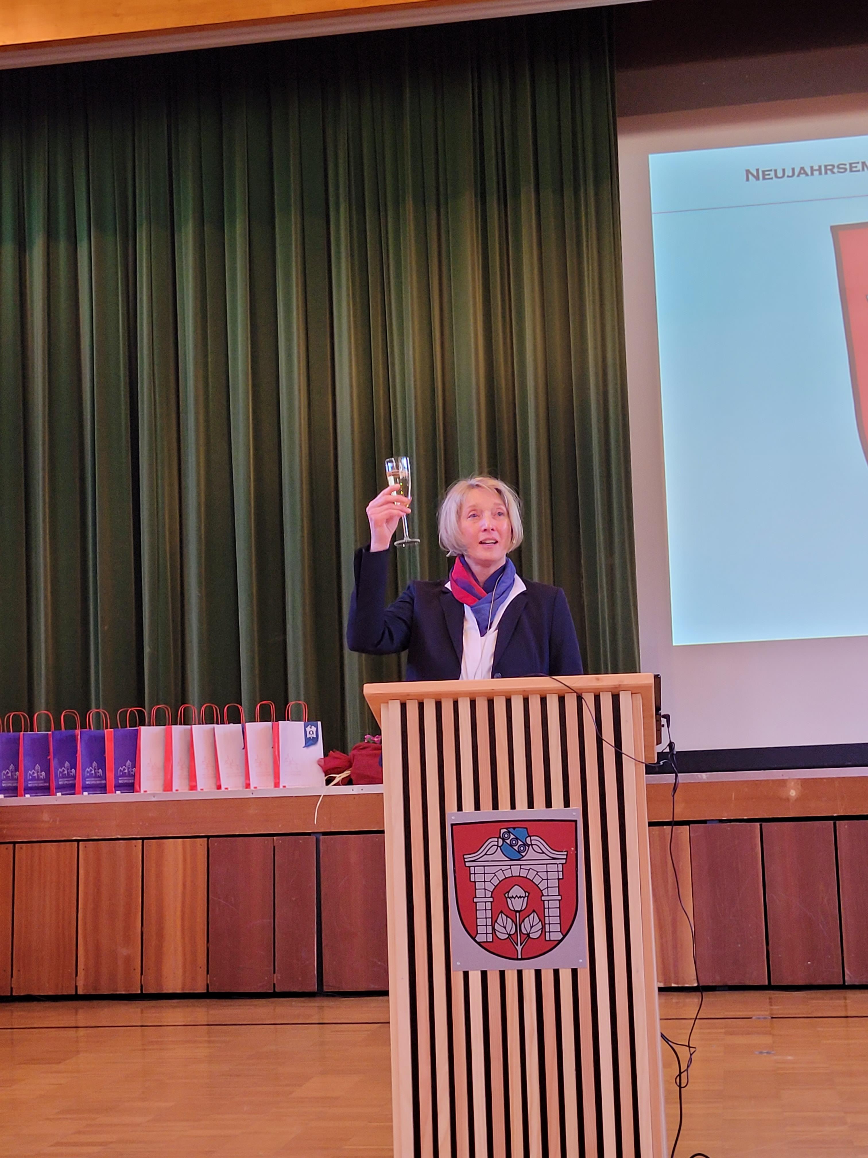 In ihrer Rede erinnerte die Bürgermeisterin auch an die Herausforderungen des vergangenen Jahres, darunter globale Krisen, Naturkatastrophen und gesellschaftliche Veränderungen, und es gab einen Ausblick auf die bevorstehenden Aufgaben der Gemeinde. Insbesondere die angespannte Finanzlage der Kommunen, aber auch die geplanten Projekte, wie Straßen- und Gebäudesanierungen, standen im Fokus. Gleichzeitig rief sie zu Optimismus, Engagement und einer aktiven Mitgestaltung der Zukunft auf.
